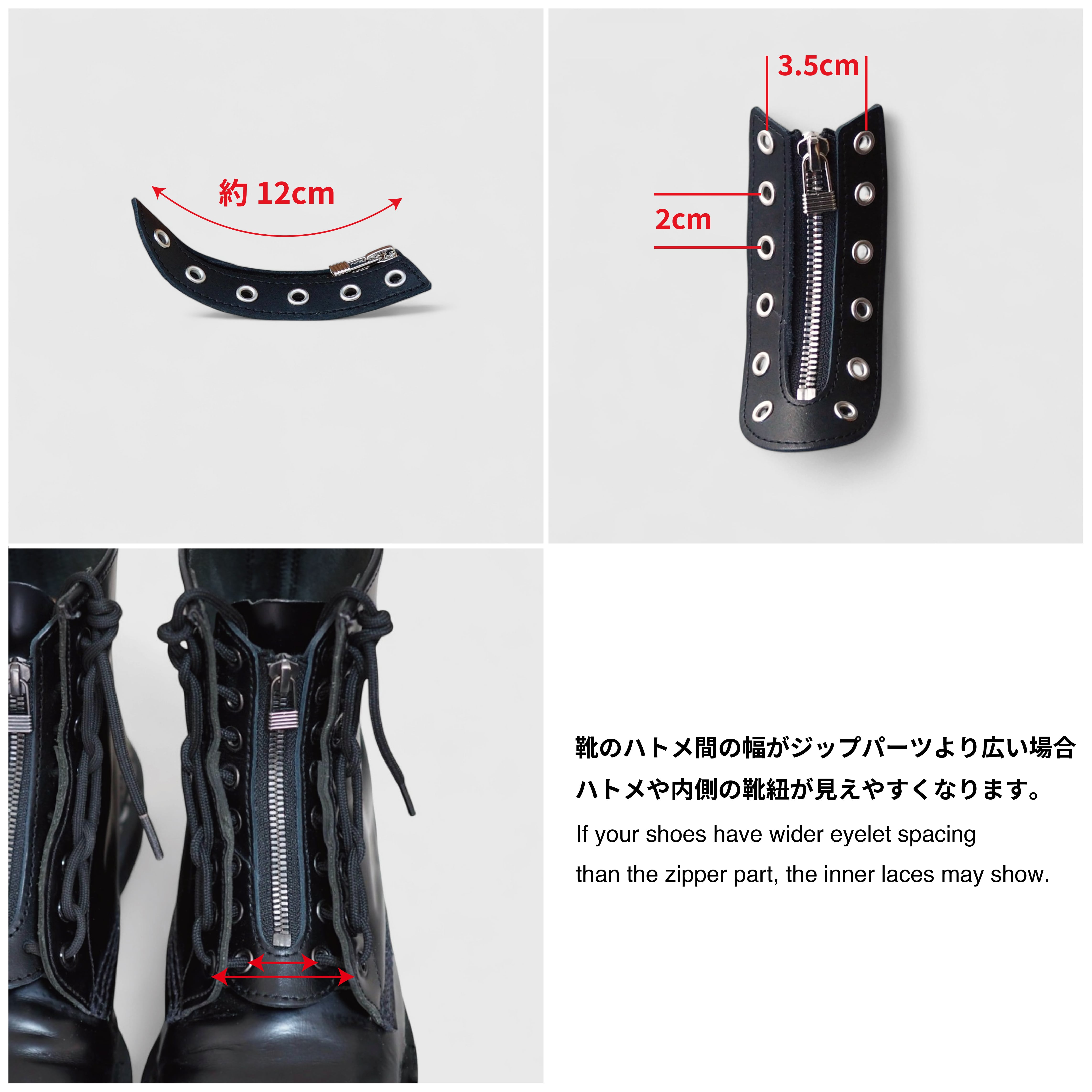 6ホールブーツをフロントジップにカスタムできるカスタムジップパーツ(ジッパーユニット)です。